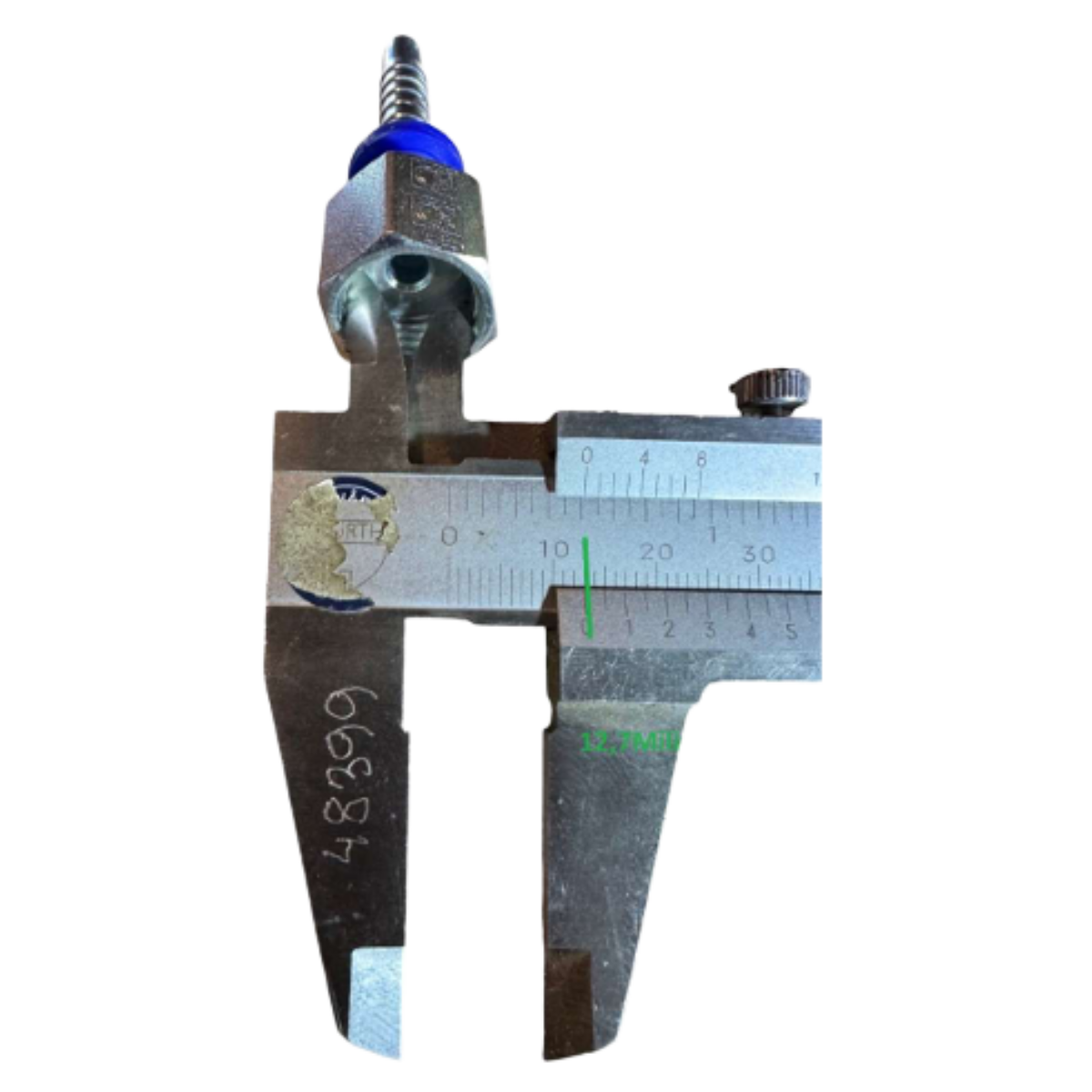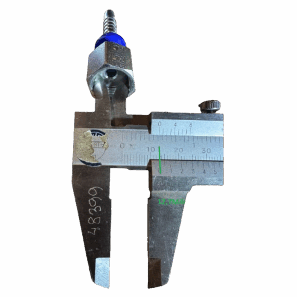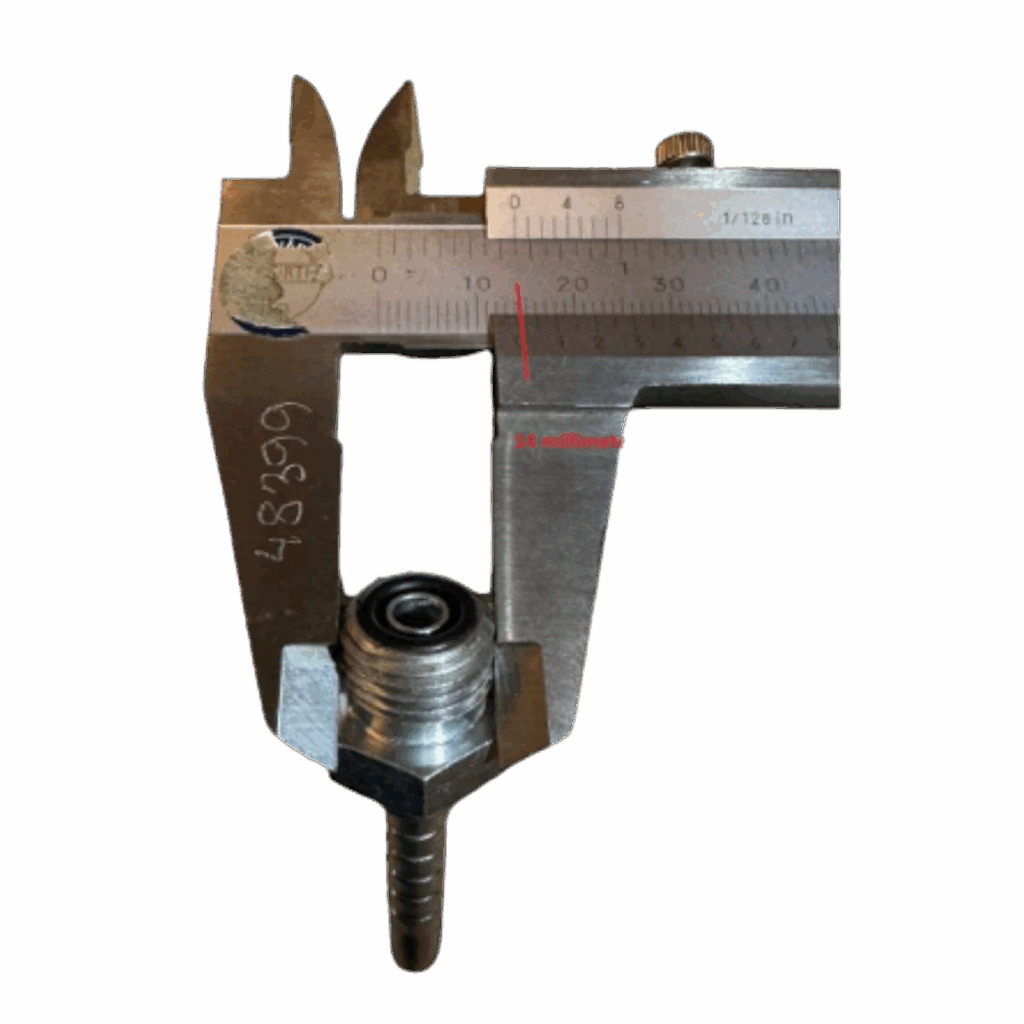 Brug en skydelære til at måle den ydre diameter af gevindet på han fittingen