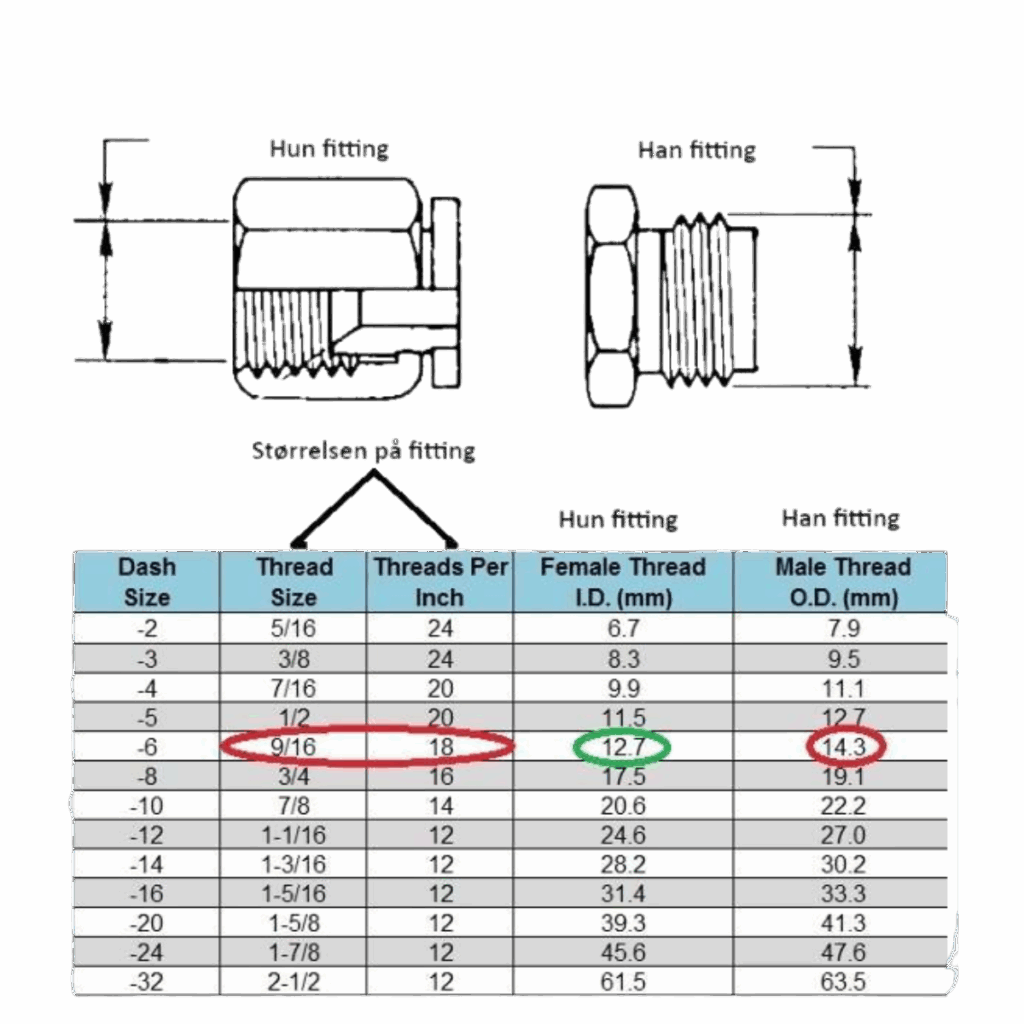 1. Mål diameteren af gevindet på din han fitting: billede 1