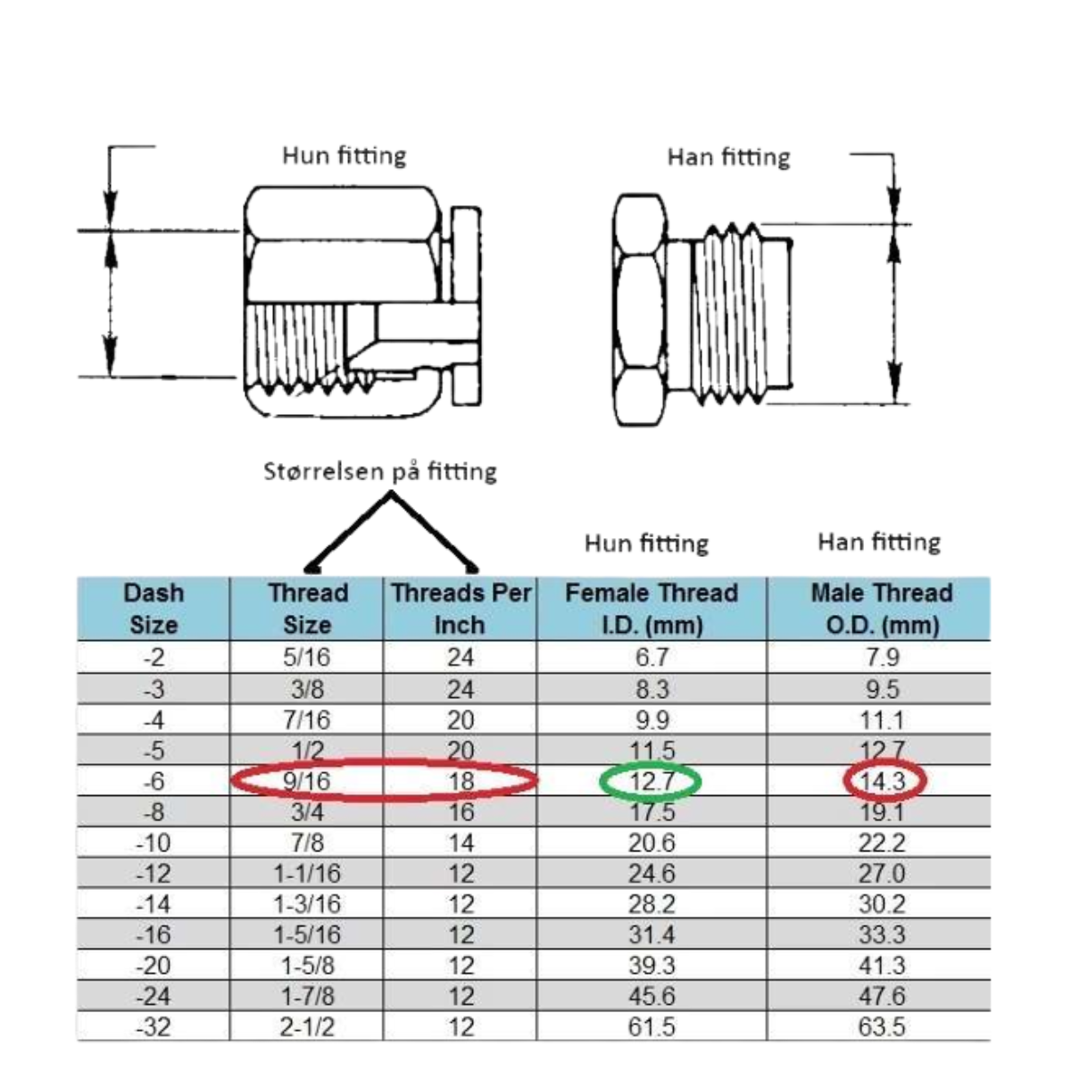 2. Mål diameteren af gevindet på din hun fitting: billede 1A