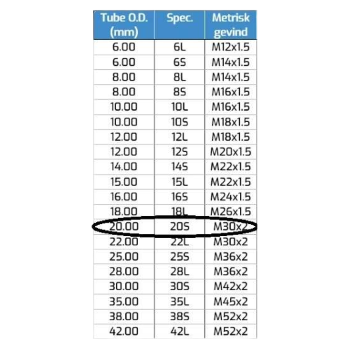 På de fleste SVÆR millimeter fittings med omløber er størrelsen ofte skrevet